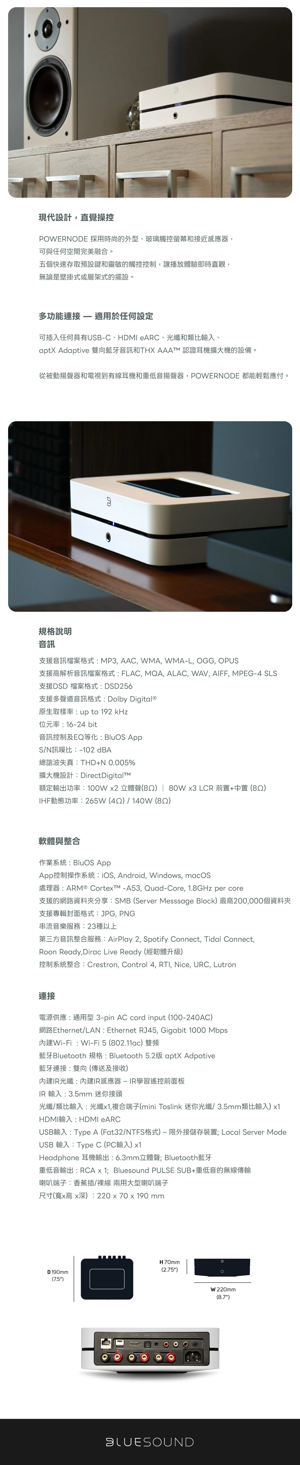 BLUESOUND 數位串流音樂擴大機 POWERNODE N331 白色