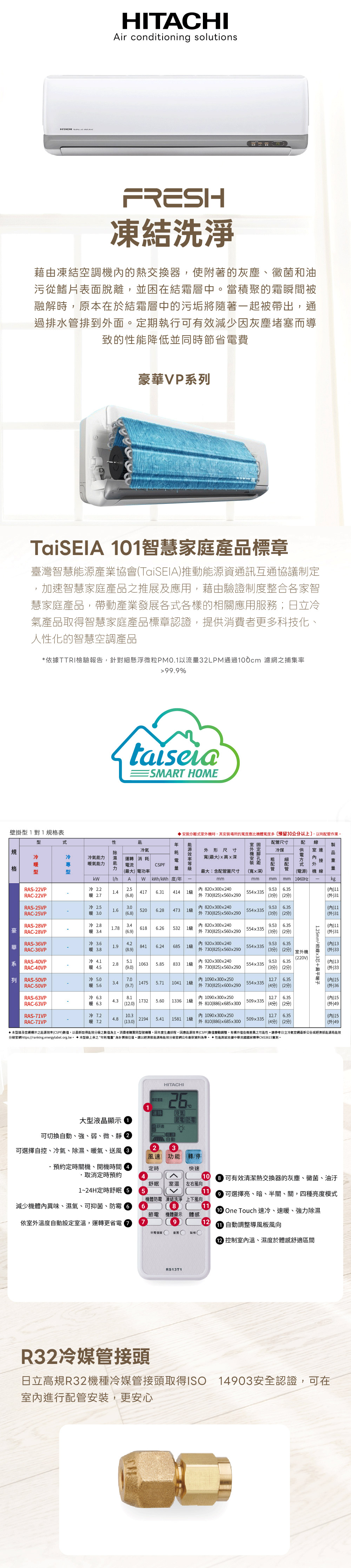 HITACHI 日立冷氣 5-7坪 豪華系列 變頻冷暖分離式冷氣(RAC-40VP/RAS-40VP)