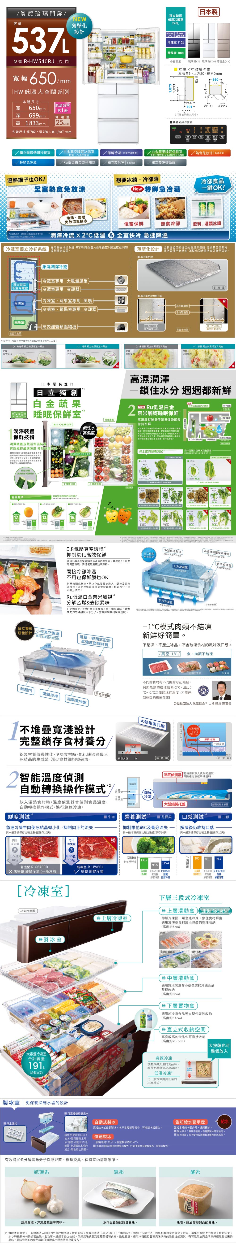 HITACHI日立 537L一級能效日製變頻六門冰箱 琉璃鏡(RHW540RJ-X)