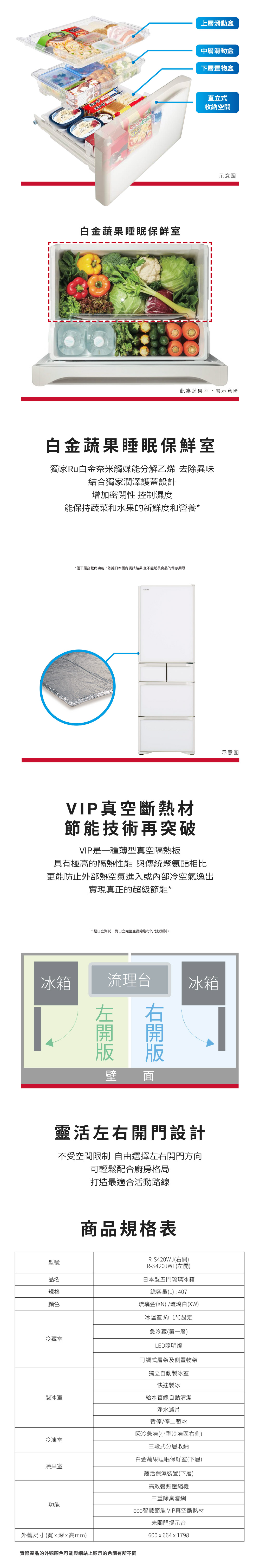 HITACHI日立 407L一級能效日製五門右開冰箱 琉璃金(RS420WJ-XN)