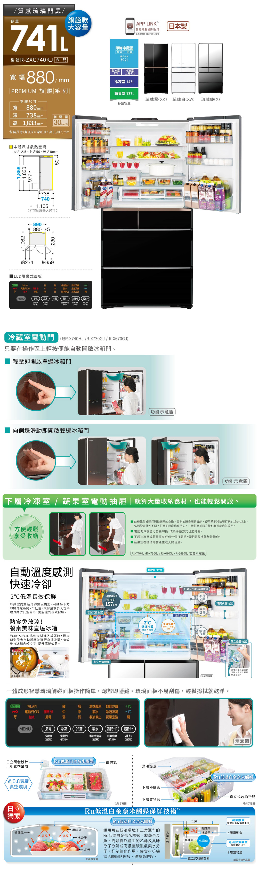 HITACHI日立 741L 變頻日製六門冰箱 琉璃白(RZXC740KJ-XW)