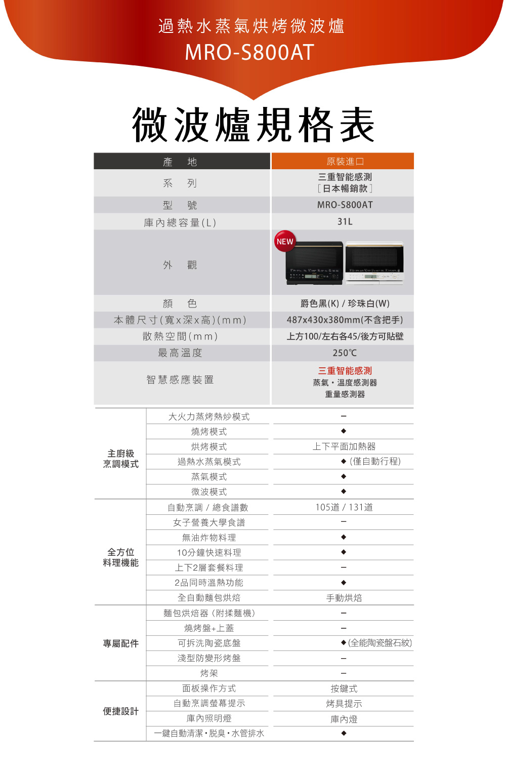 HITACHI日立 31公升水波爐MROS800AT 珍珠白 微波爐(MROS800AT-W)