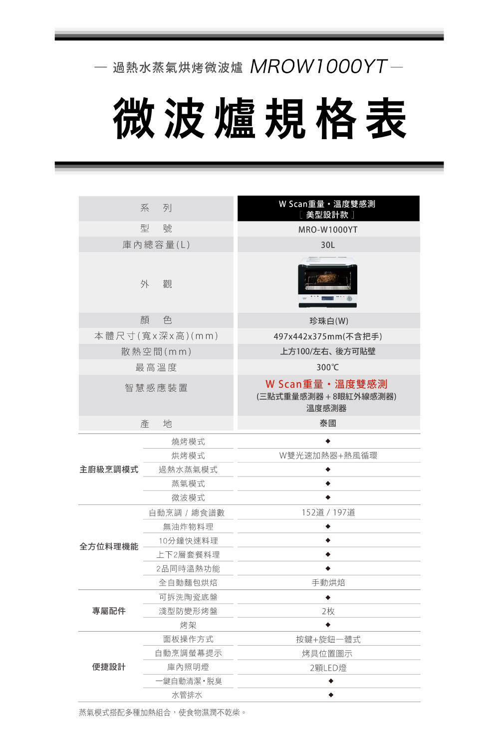 HITACHI日立 30L過熱水蒸氣烘烤微波爐(MROW1000YT-W)