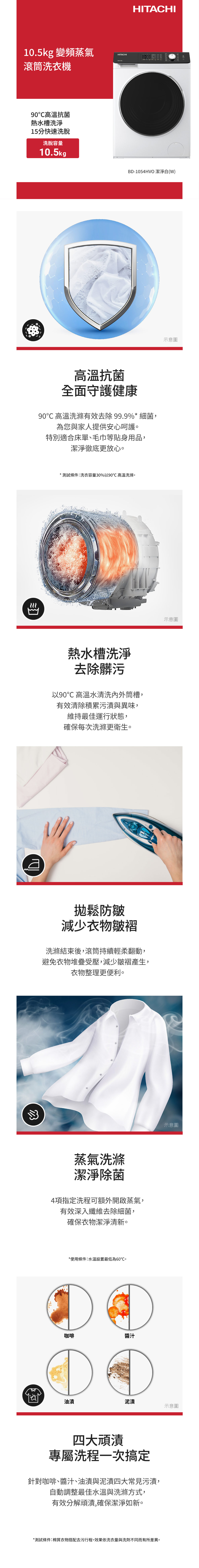 HITACHI日立 10.5公斤 變頻蒸氣洗滌左開滾筒洗衣機 (BD1054HVO-W)