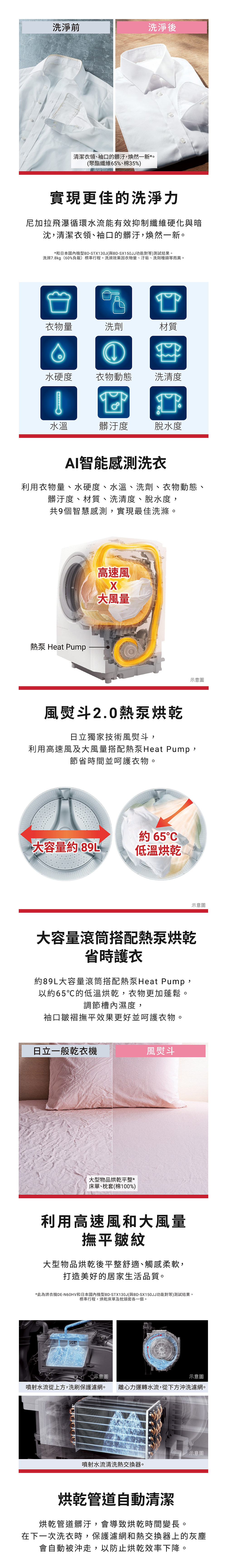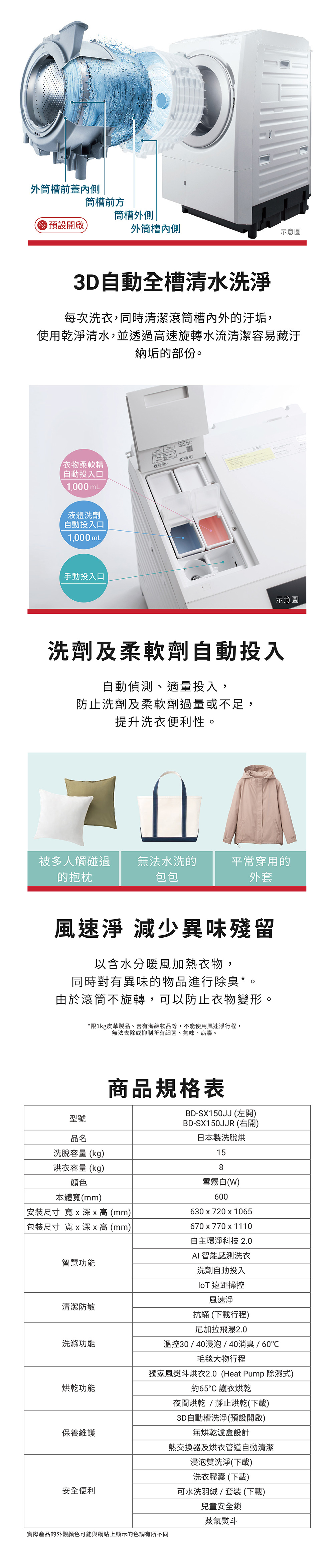 HITACHI日立 15KG 日製AI智能感測變頻右開熱泵滾筒洗脫烘洗衣機(BDSX150JJR-W)