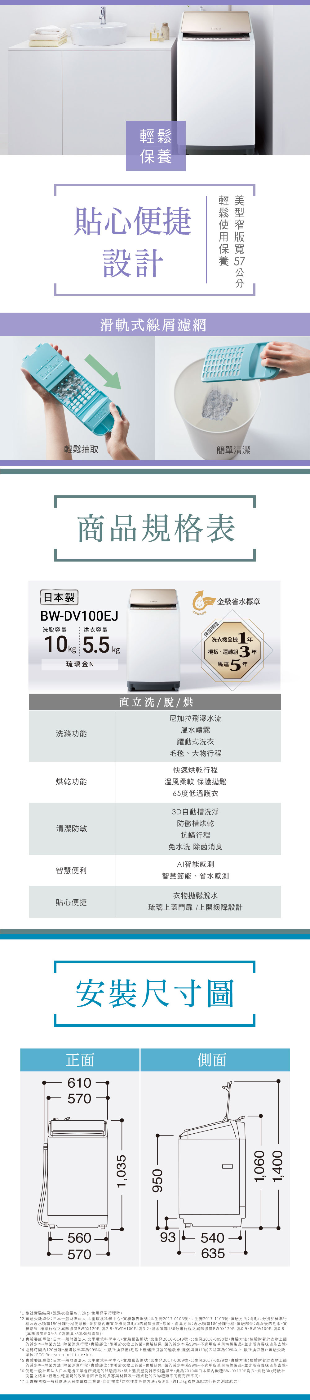 ★購買洗衣機前請務必確認安裝位置電源/電壓、水龍頭大小/水壓、排水口是否符合再行下單。註:依原廠內含配件長度之規格為認定基準。