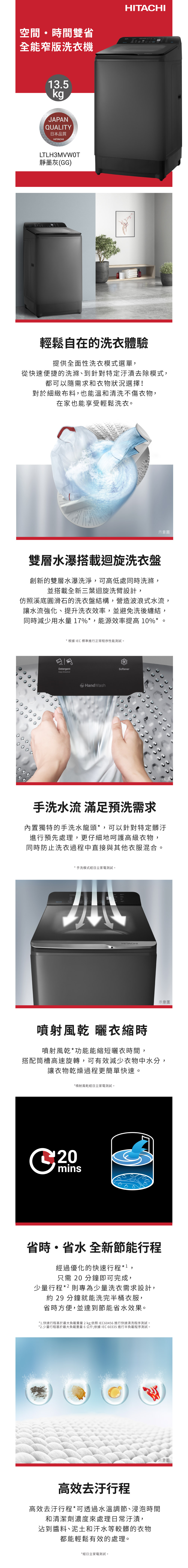 HITACHI日立 13.5KG窄版直立式變頻洗衣機 (LTLH3MVW0T-GG)