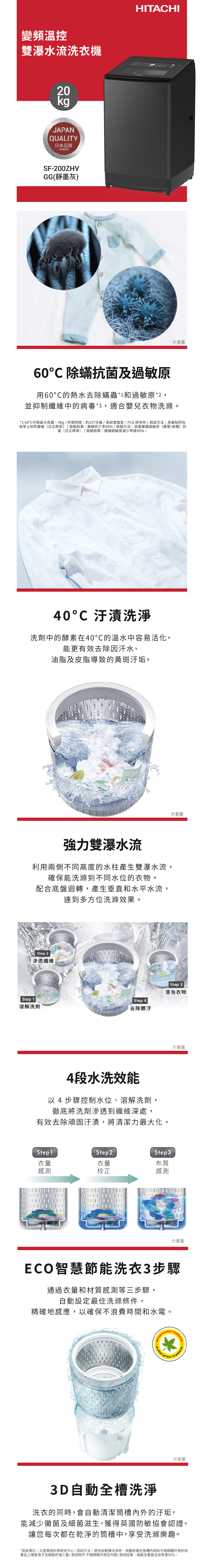 HITACHI日立 20KG 三段溫控變頻直立式洗衣機(SF200ZHV-GG)