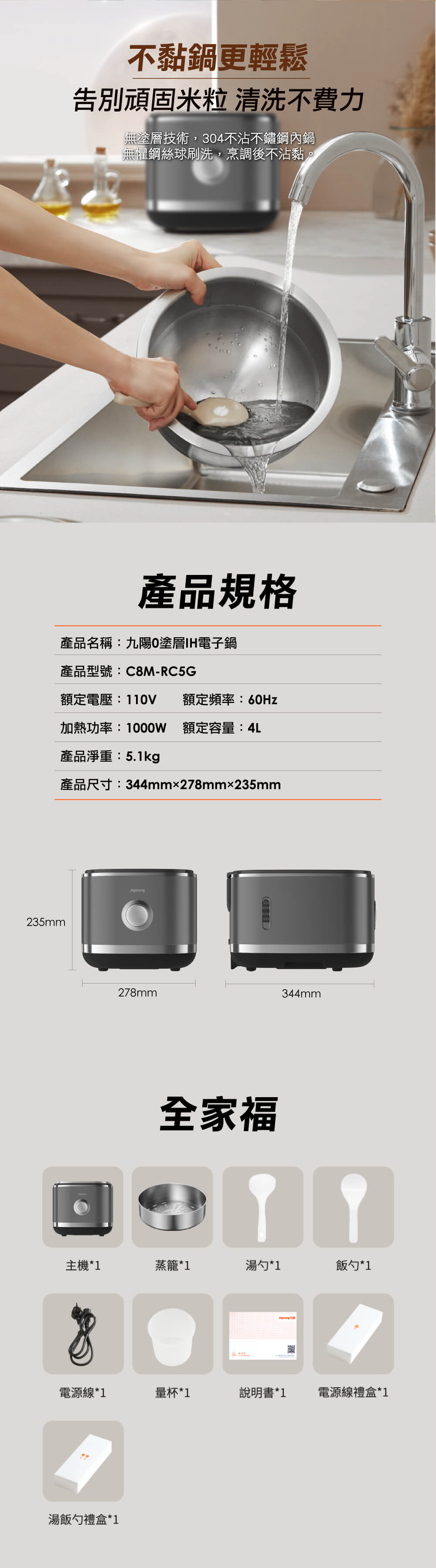 JOYOUNG 九陽 0塗層IH電子鍋(C8M-RC5G)