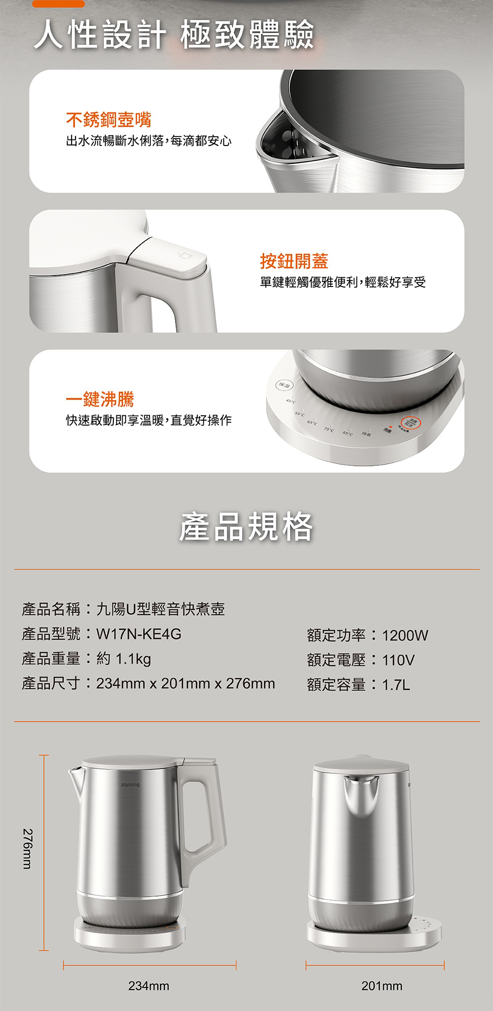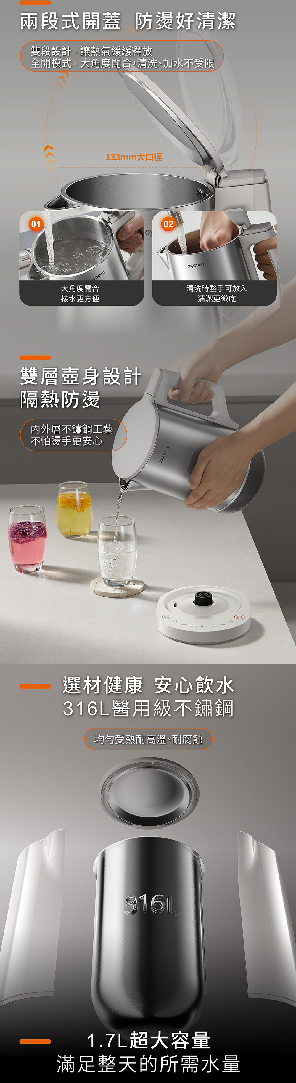 JOYOUNG 九陽 醫療級316無縫一體內膽溫控輕音快煮壺(W17N-KE4G)
