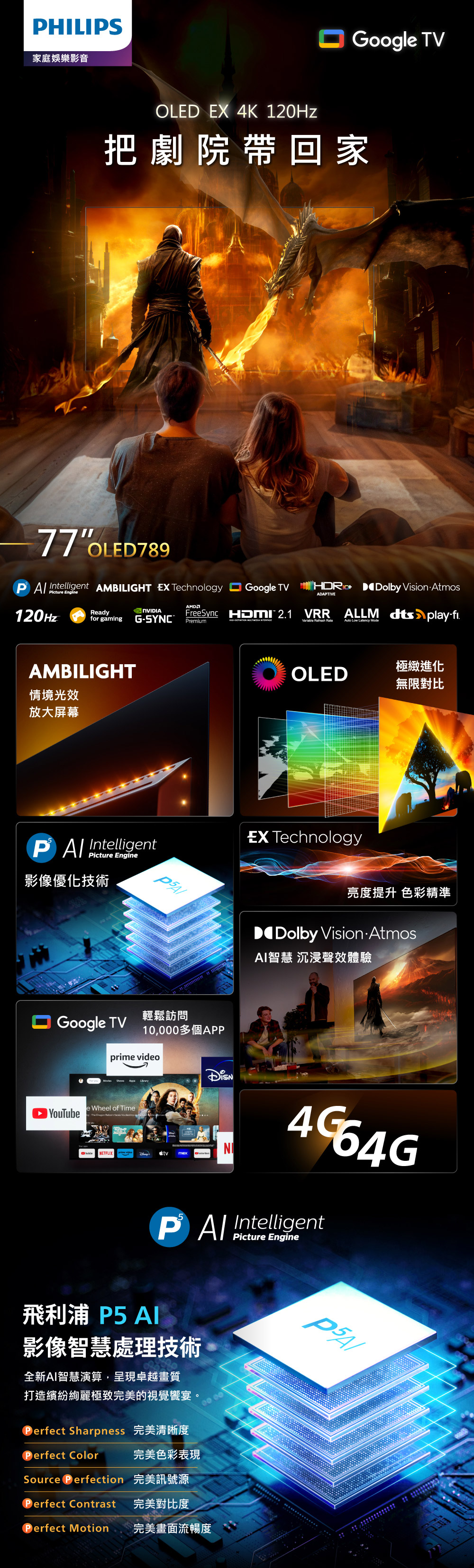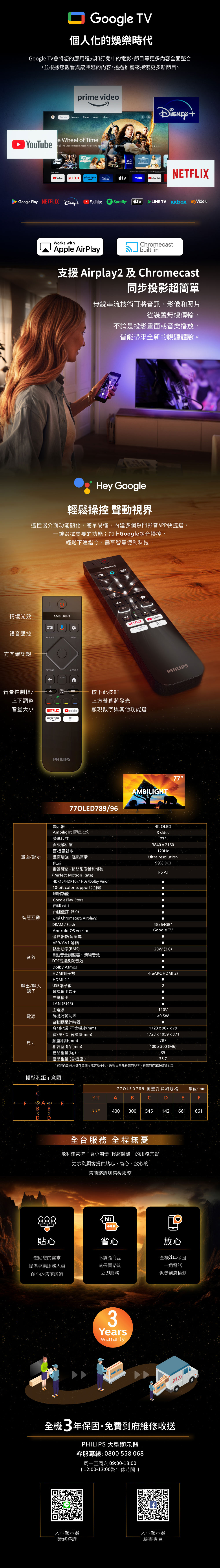 PHILIPS飛利浦 77型4K 120Hz OLED Google TV 智慧顯示器 77OLED789