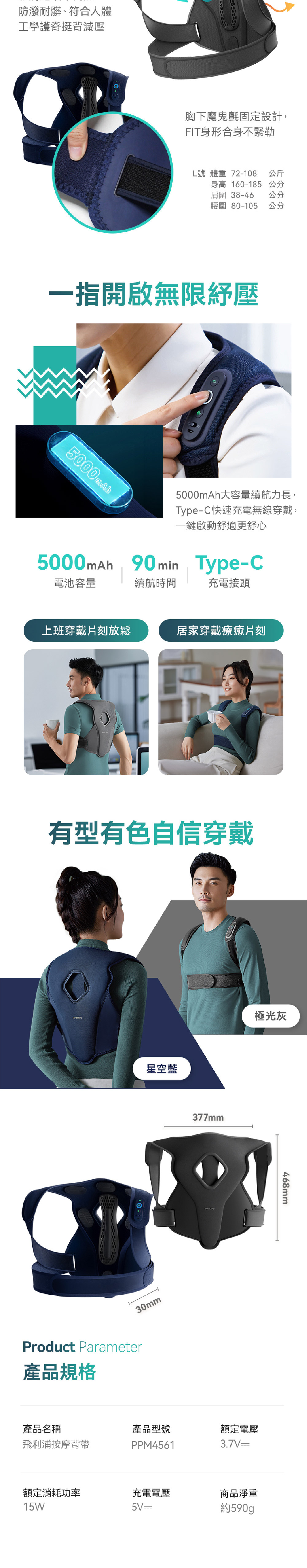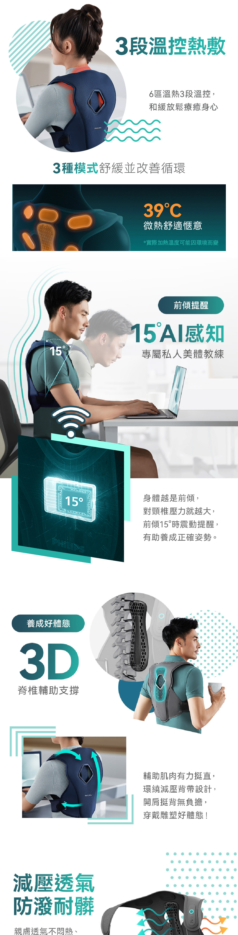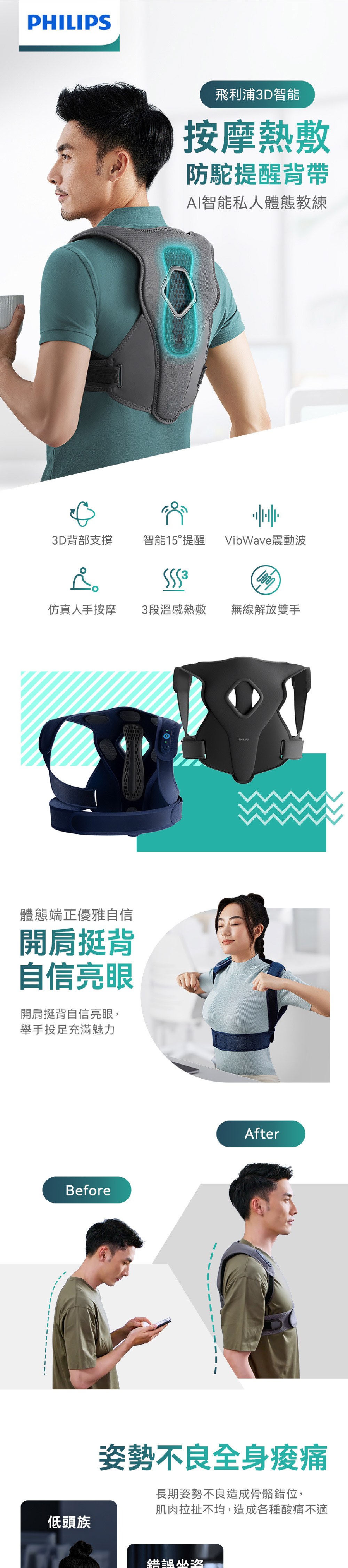 Philips 飛利浦 3D智能按摩熱敷防駝提醒背帶/背部按摩器(PPM4561DB)