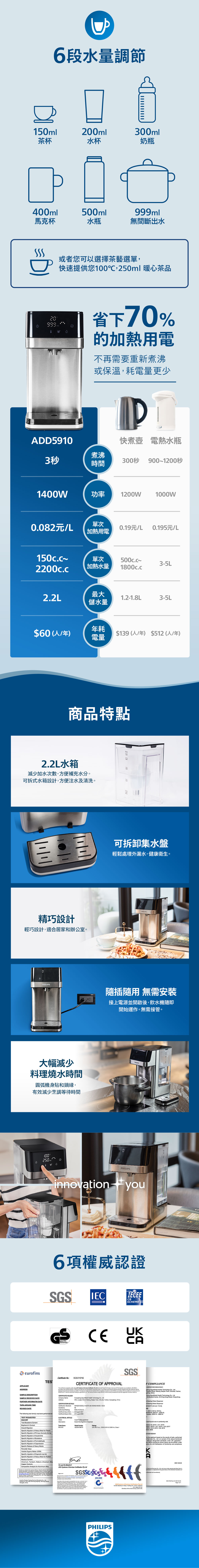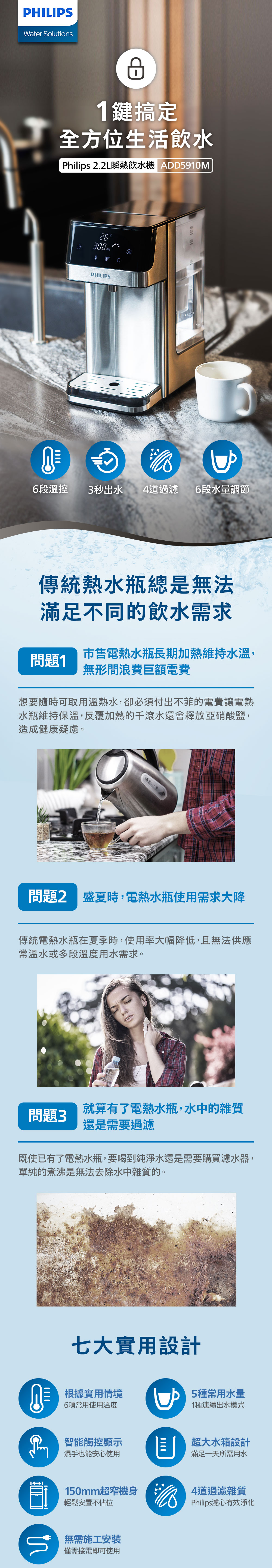 Philips 飛利浦 2.2L免安裝瞬熱濾淨飲水機 ADD5910M(主機內含濾芯)