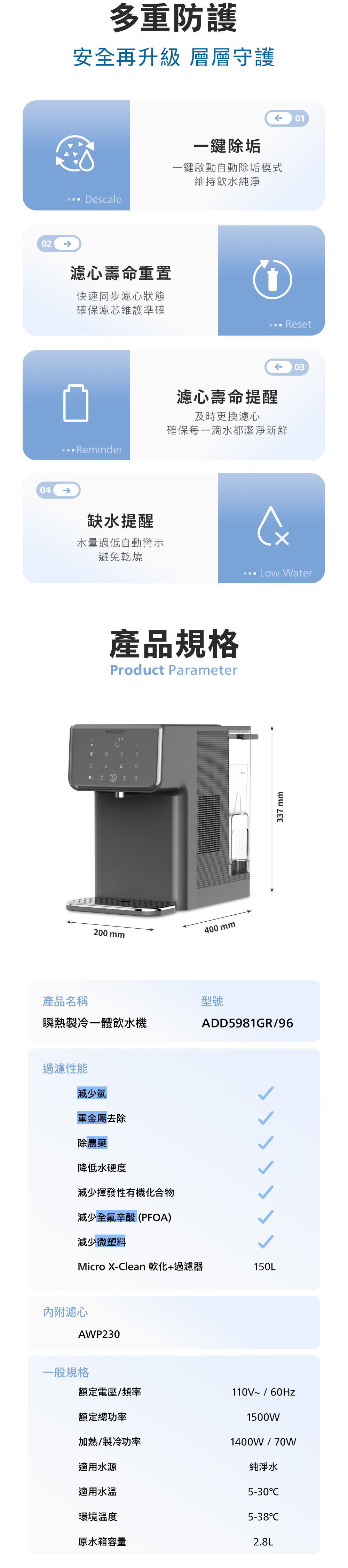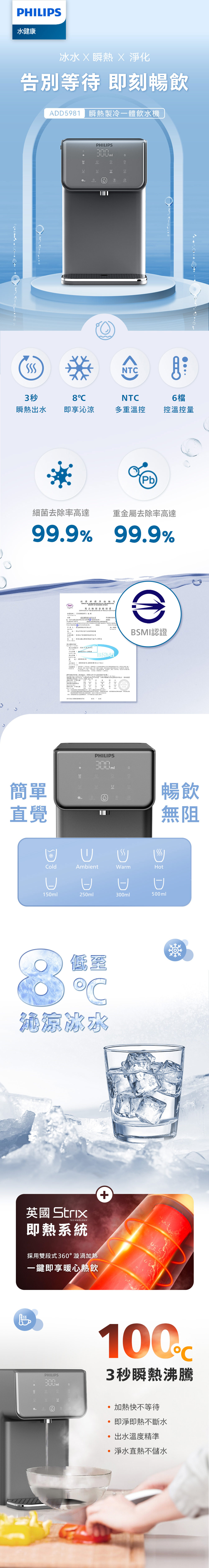 Philips 飛利浦 瞬熱 製冷 UV-C 一體飲水機(ADD5981GR)