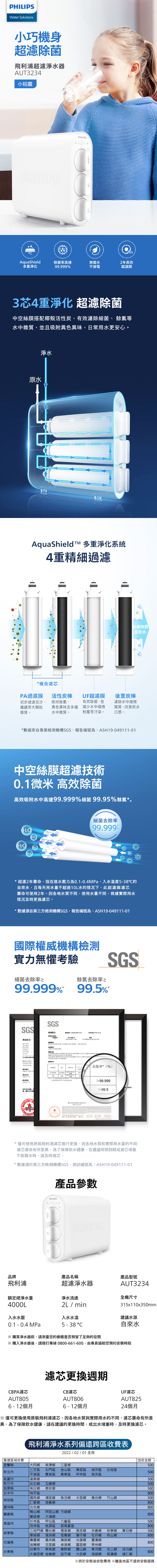 Philips 飛利浦 超濾淨水器(AUT3234)