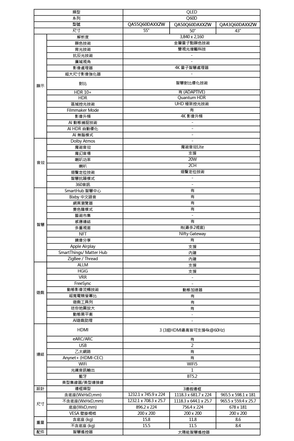SAMSUNG三星 43型4K QLED智慧連網 液晶顯示器 (QA43Q60DAXXZW)
