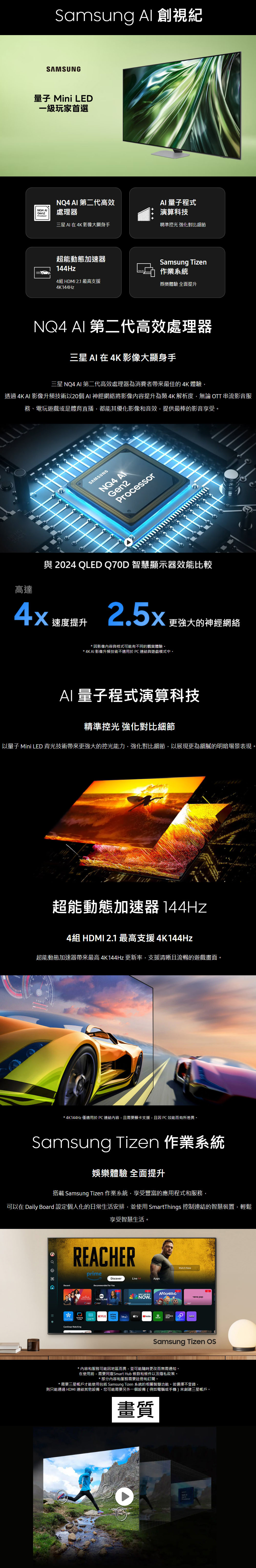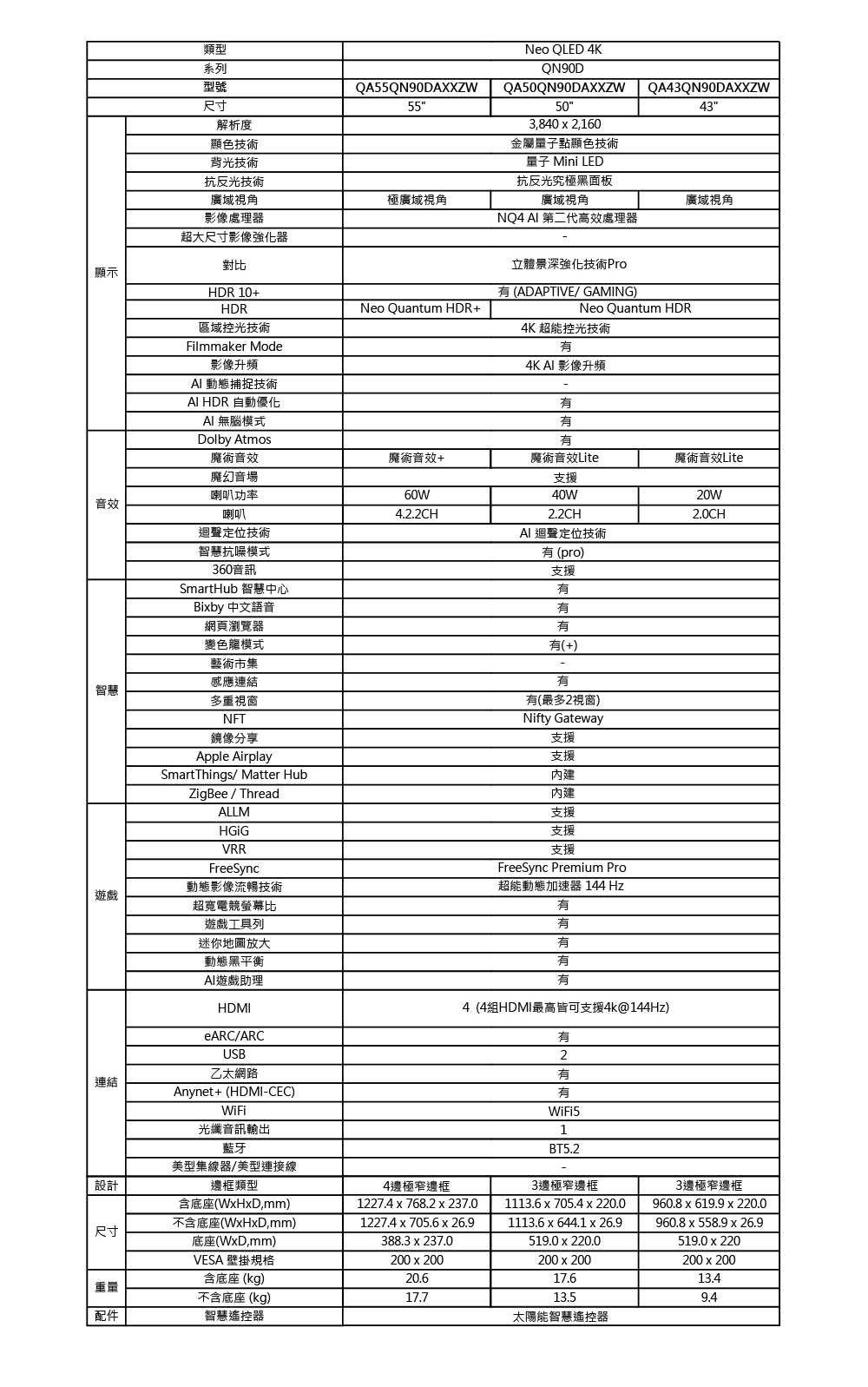 SAMSUNG三星 55型4K Neo QLED智慧連網 144Hz Mini LED液晶顯示器 (QA55QN90DAXXZW)