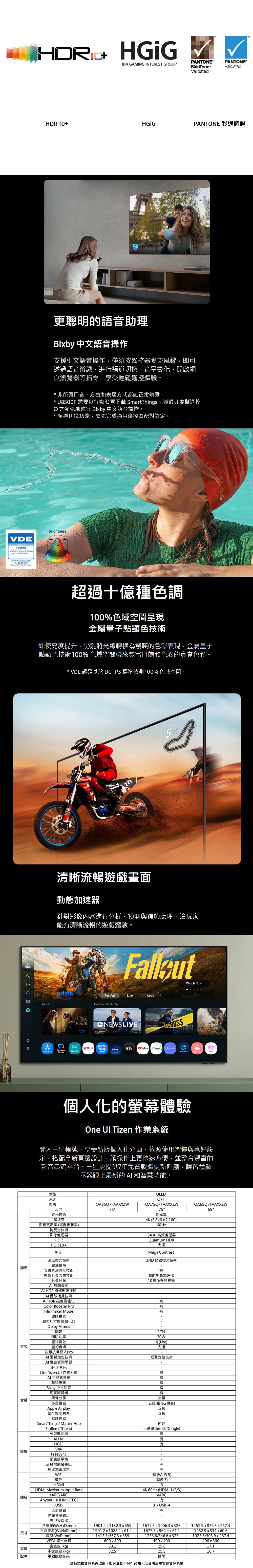 SAMSUNG三星 65型 4K QLED Vision AI 智慧顯示器 (QA65Q7FAAXXZW)