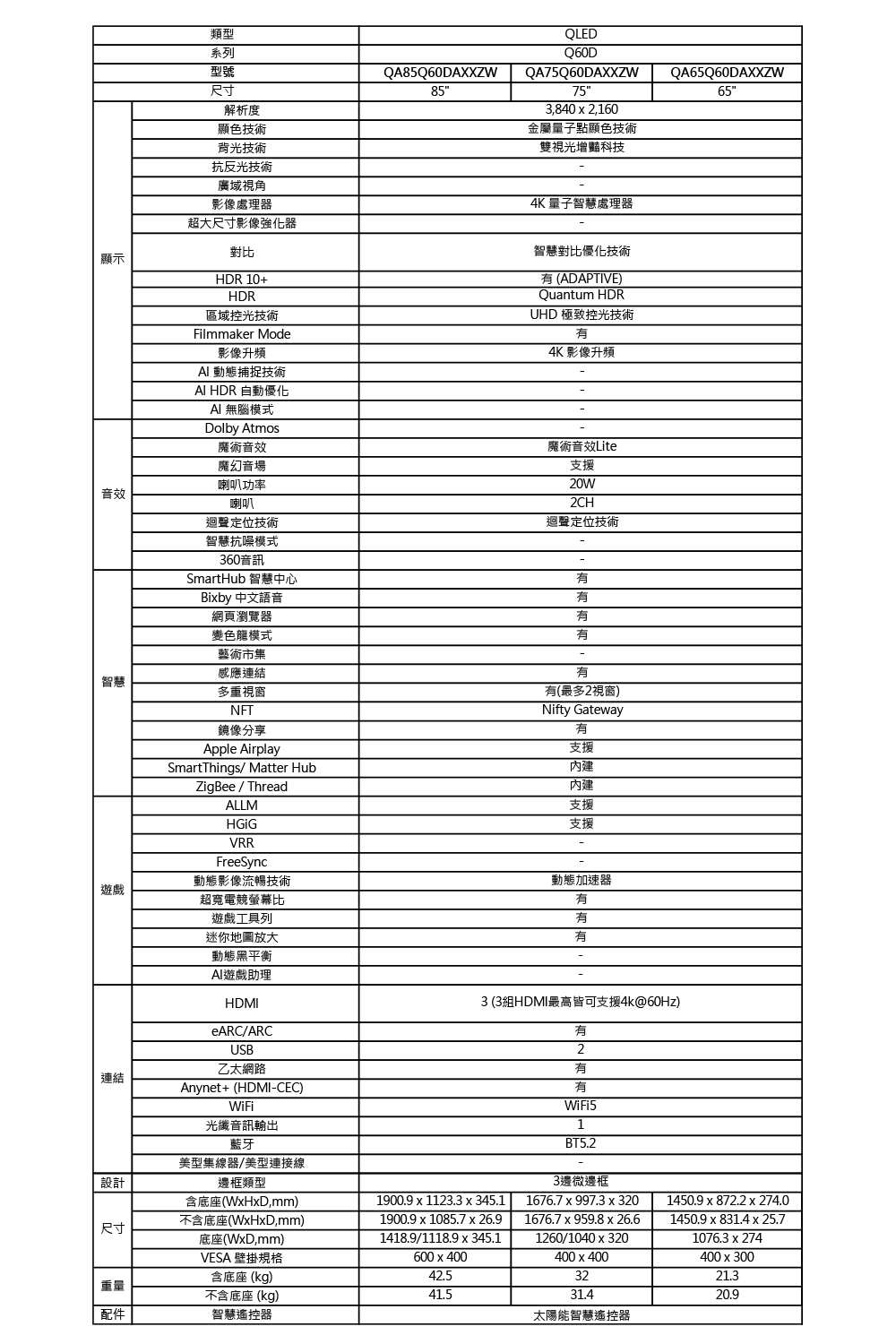 SAMSUNG三星 75型4K QLED智慧連網 液晶顯示器 (QA75Q60DAXXZW)