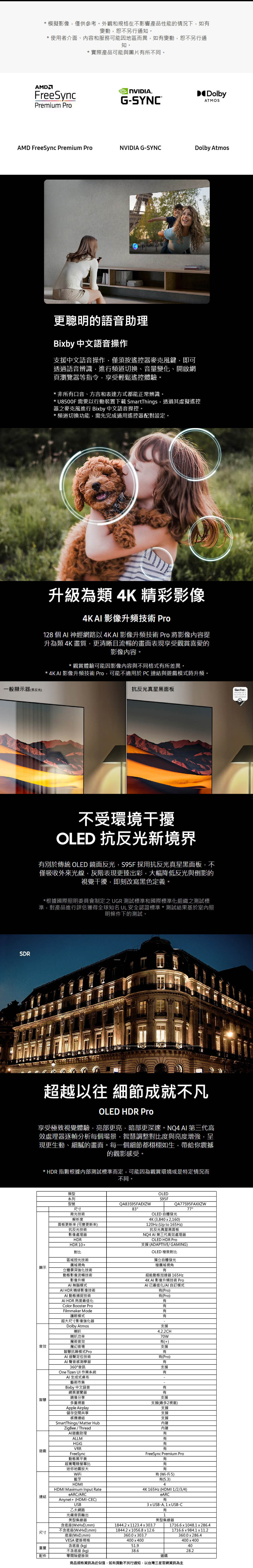 SAMSUNG三星 83型 4K 165Hz OLED AI智慧顯示器 (QA83S95FAXXZW)