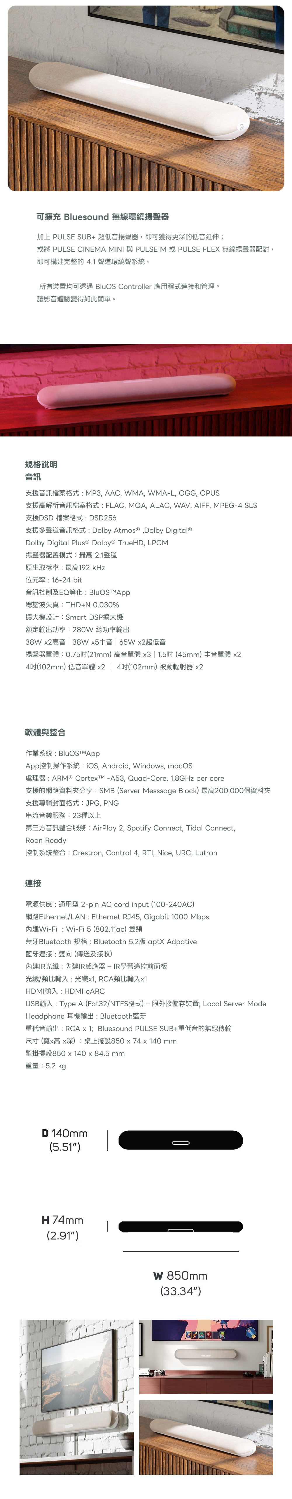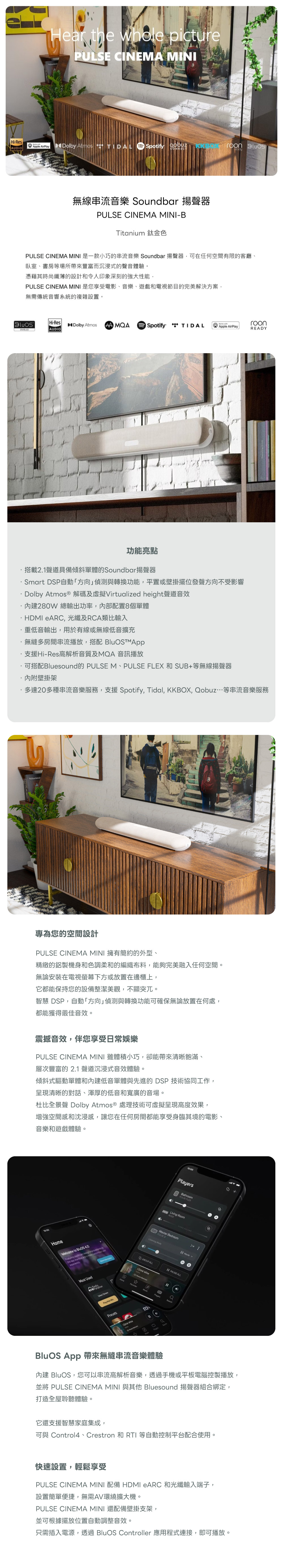BLUESOUND 無線串流音樂 Soundbar 揚聲器 PULSE CINEMA MINI 鈦金色