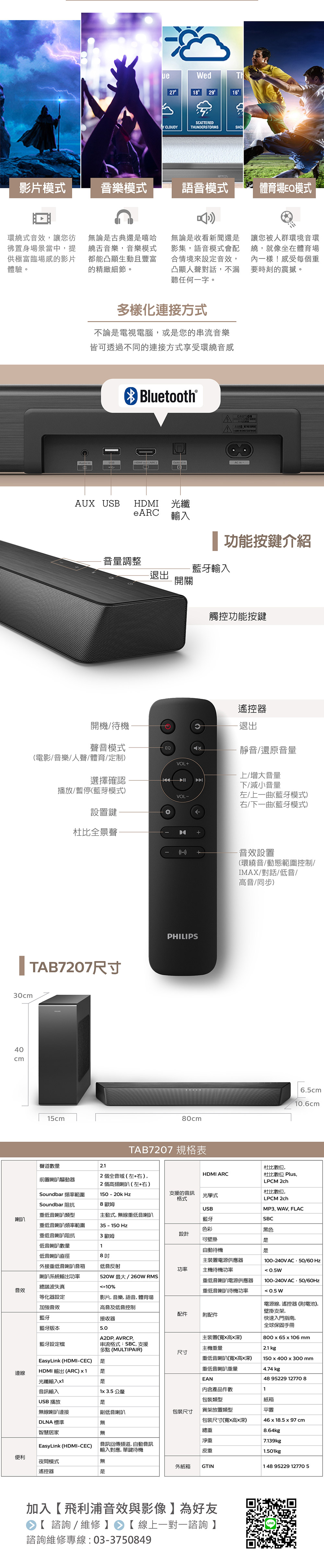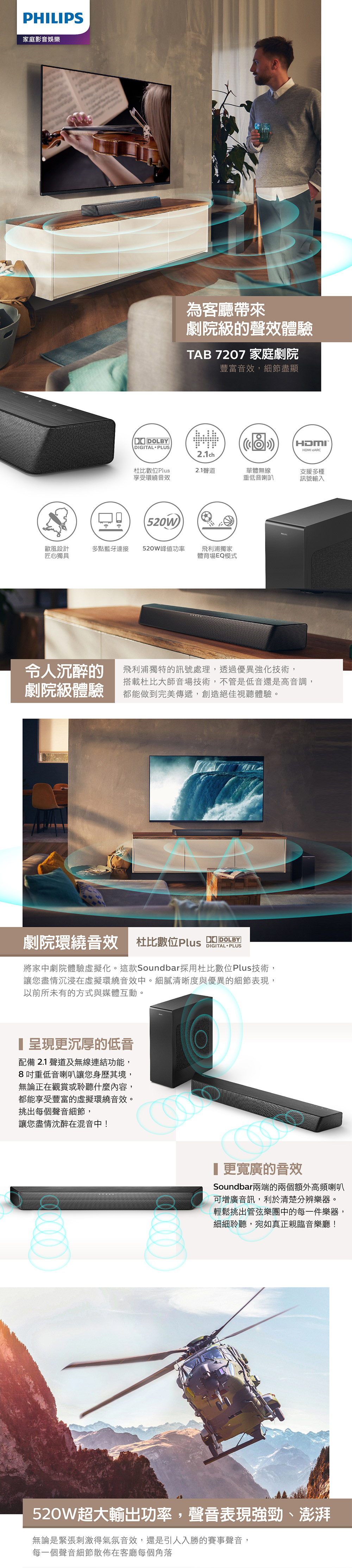 Philips 飛利浦 2.1聲道 聲霸 Soundbar 家庭劇院 TAB7207