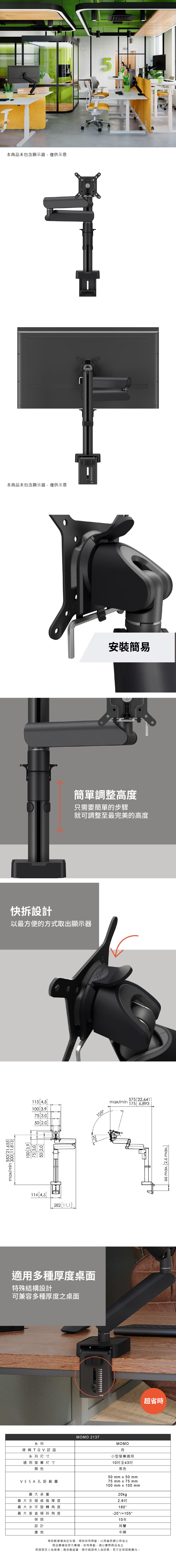 Vogel’s 荷蘭進口品牌 10~43吋螢幕適用 可調式顯示器支架 MOMO 2137