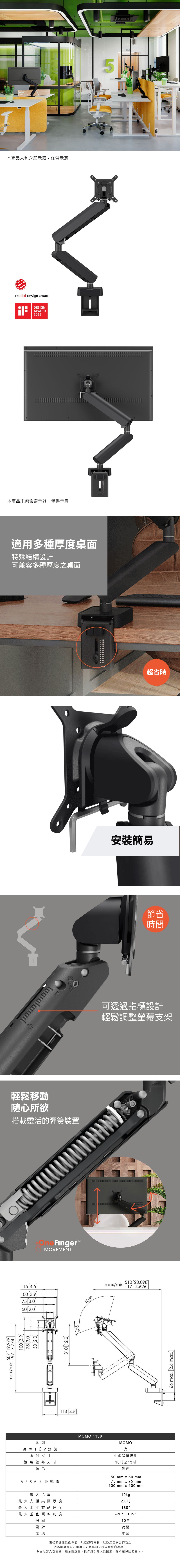 Vogel’s 荷蘭進口品牌 10~43吋螢幕適用 可調式顯示器支架 MOMO 4138