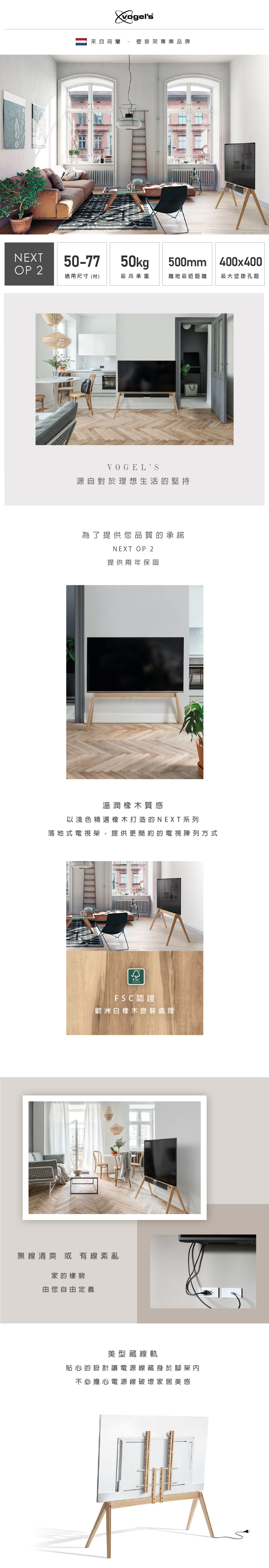 Vogel’s 荷蘭進口品牌 50-77吋適用 落地式電視橡木腳架 NEXT OP2