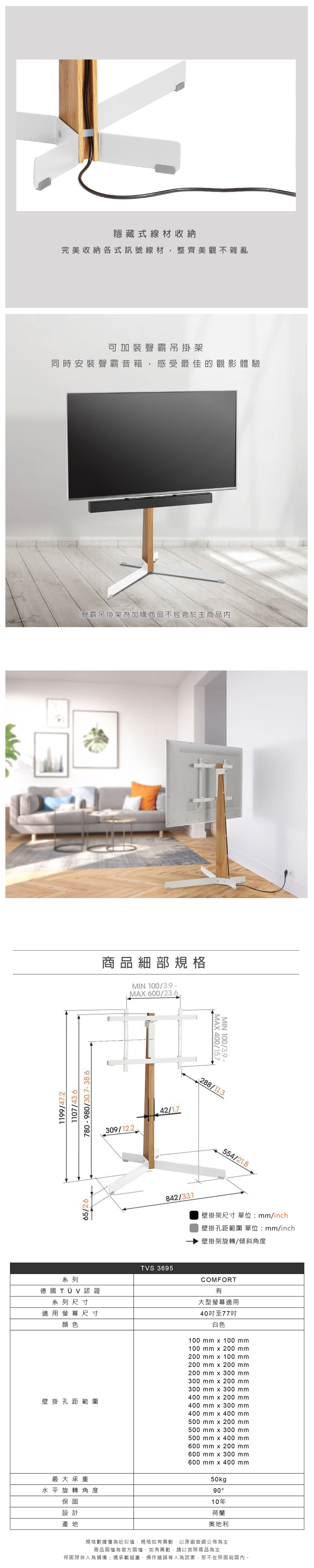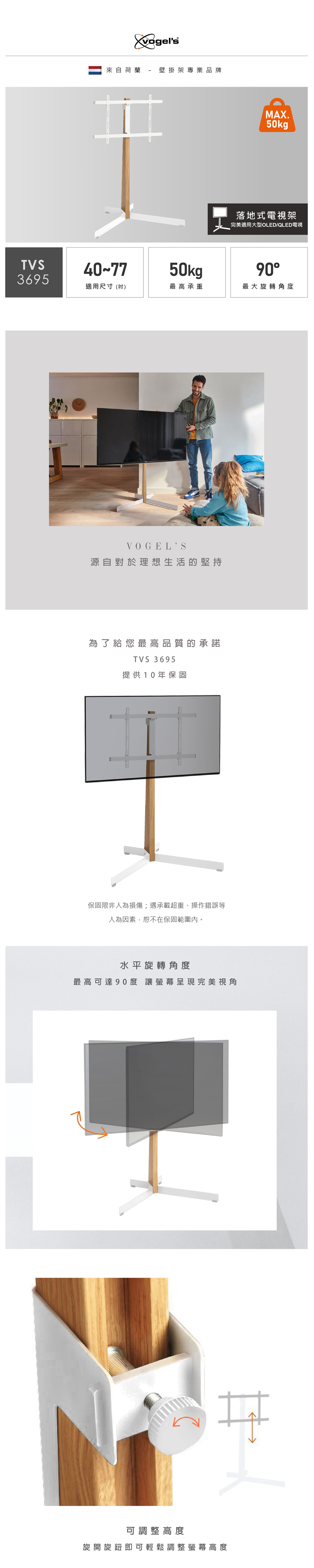 Vogel’s 荷蘭進口品牌 40-77吋 橡木落地式電視架 白色款 TVS 3695