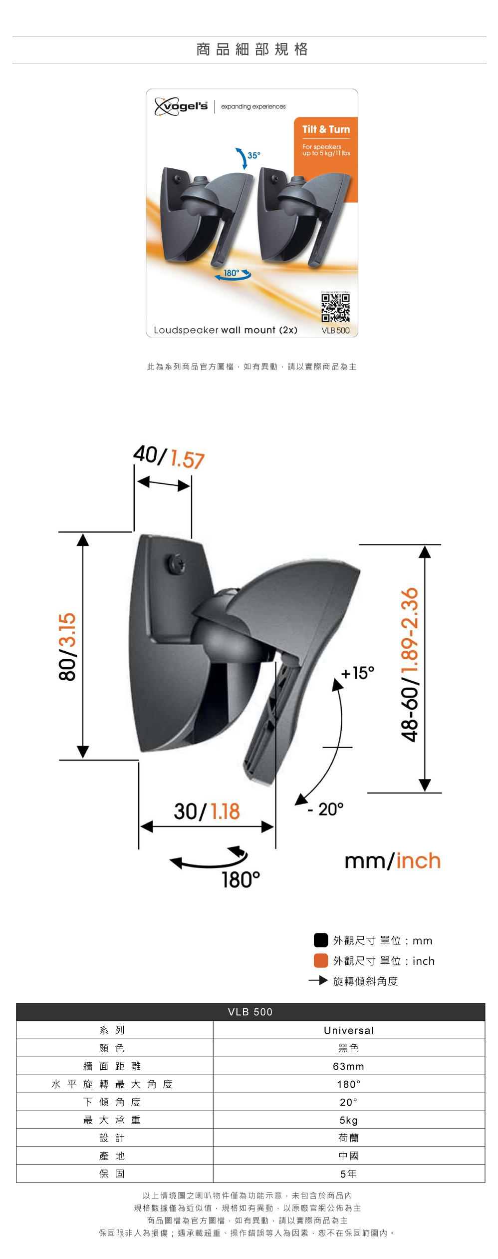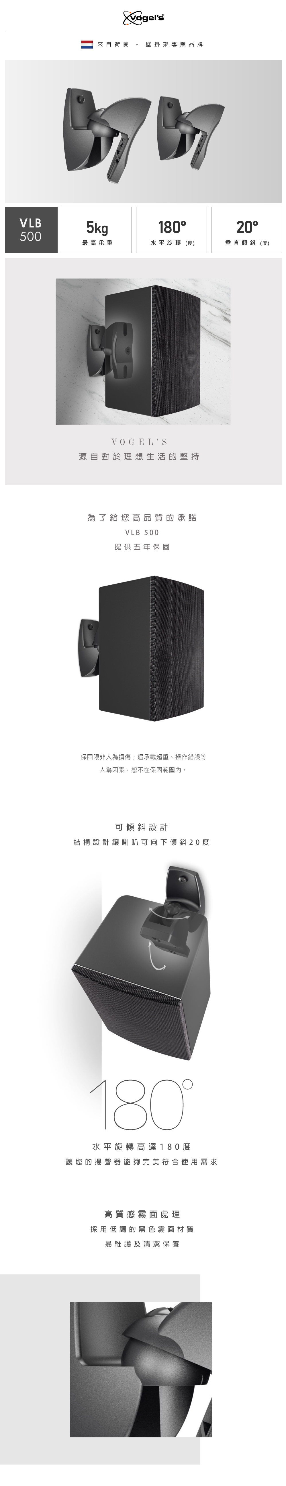 Vogel’s 荷蘭進口品牌 揚聲器壁掛架 VLB 500