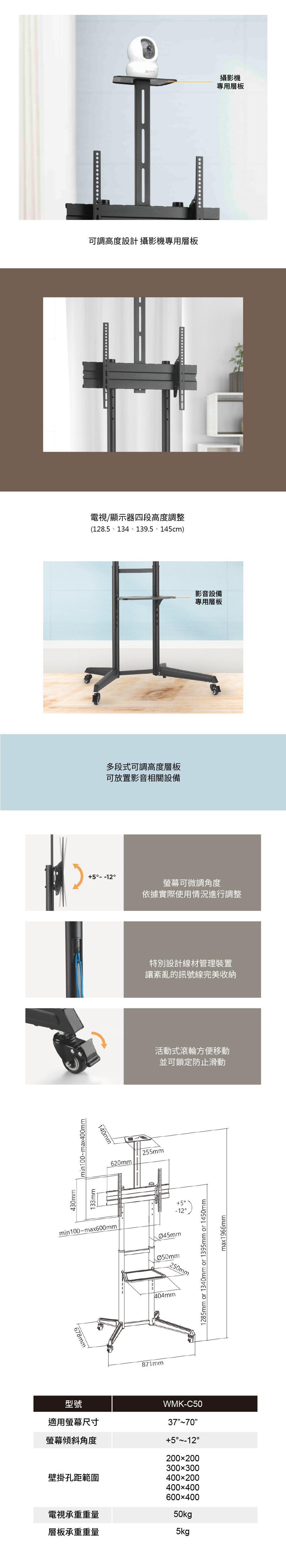 WMK 壁掛王 37至70吋適用電視落地型電視立架 WMK-C50